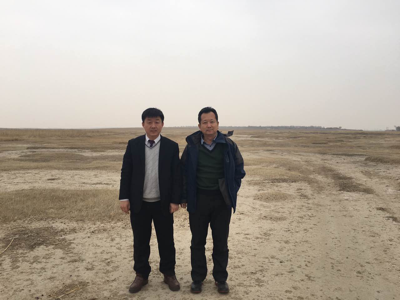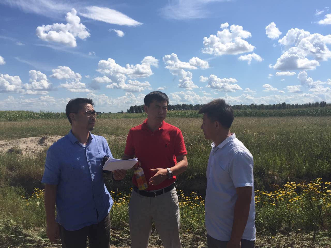 华中公司张军栋总经理、华中日本技术指导组纪中东、李宝庆销售总监与集团农业项目总经理李纯正认真探研施土施肥对盐碱地改良的效果和改善品种品质的方法。